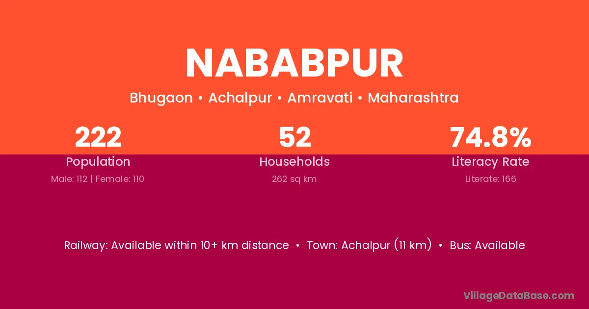 Achalpur (11 km) is the nearest town to Nababpur village for major economic activities and is located approximately 11 km away.
