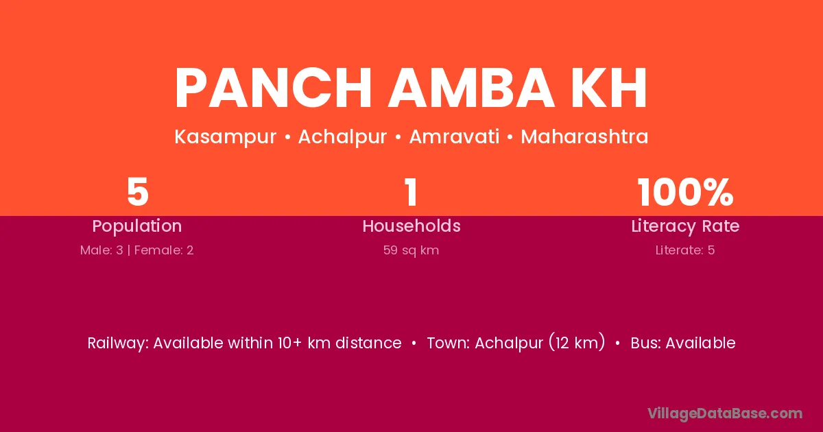 Panch Amba Kh village has a total population of 5 people, of which 3 are males and 2 are females.