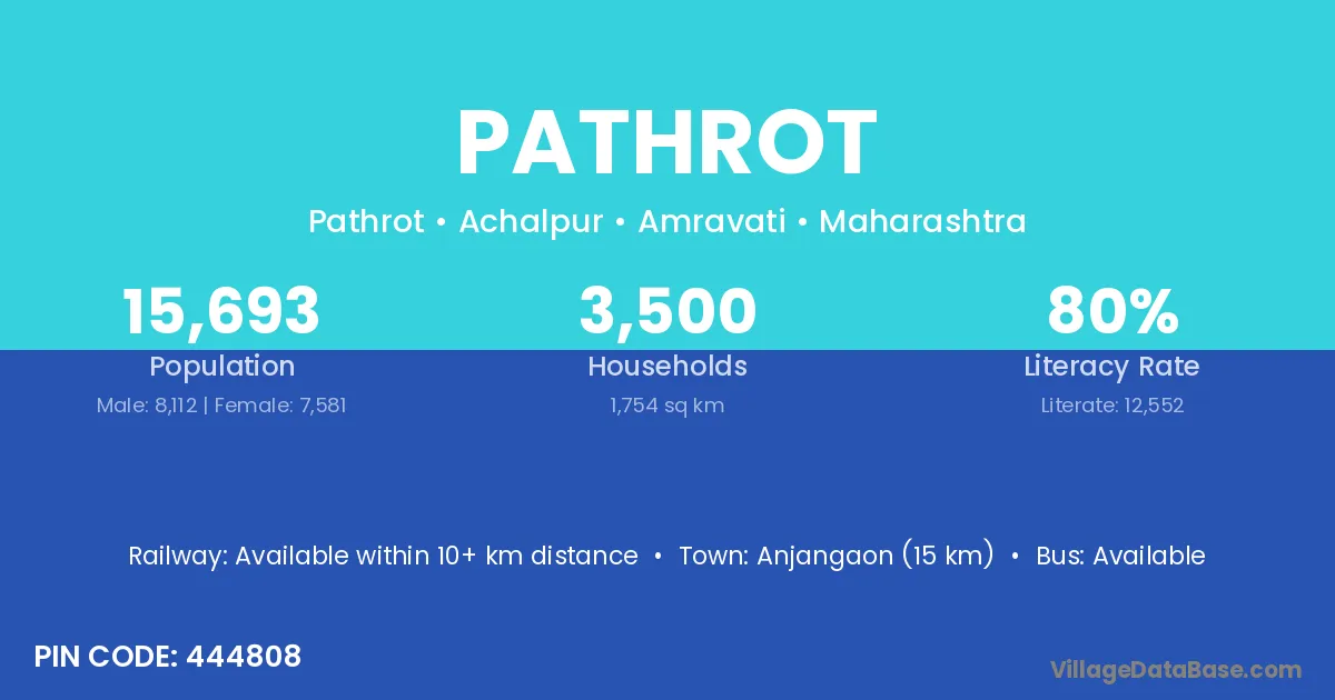 Anjangaon (15 km) is the nearest town to Pathrot village for major economic activities and is located approximately 15 km away.