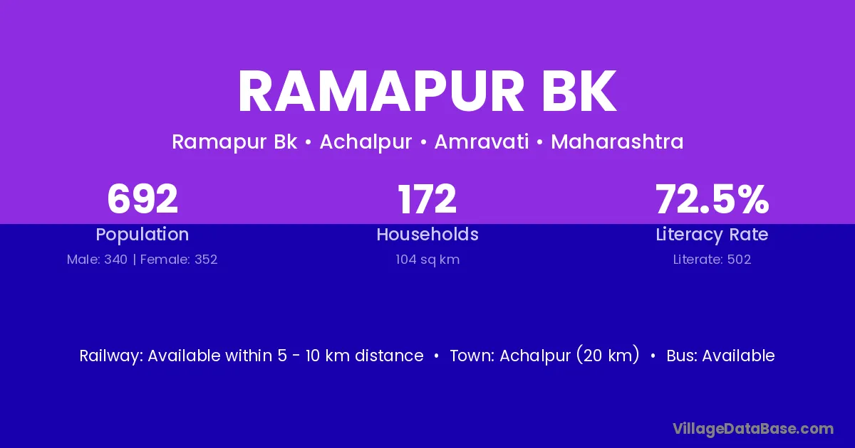Achalpur (20 km) is the nearest town to Ramapur Bk village for major economic activities and is located approximately 20 km away.
