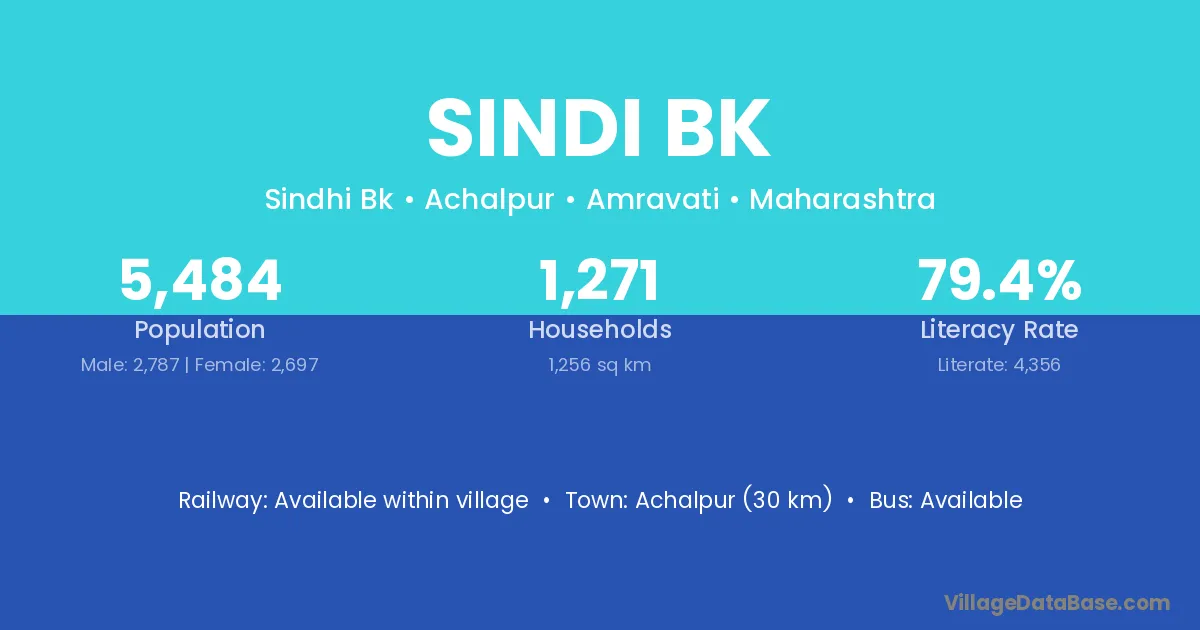 Achalpur (30 km) is the nearest town to Sindi Bk village for major economic activities and is located approximately 30 km away.