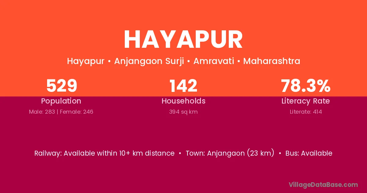 Anjangaon (23 km) is the nearest town to Hayapur village for major economic activities and is located approximately 23 km away.