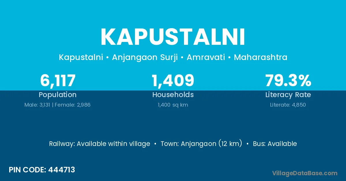 Anjangaon (12 km) is the nearest town to Kapustalni village for major economic activities and is located approximately 12 km away.