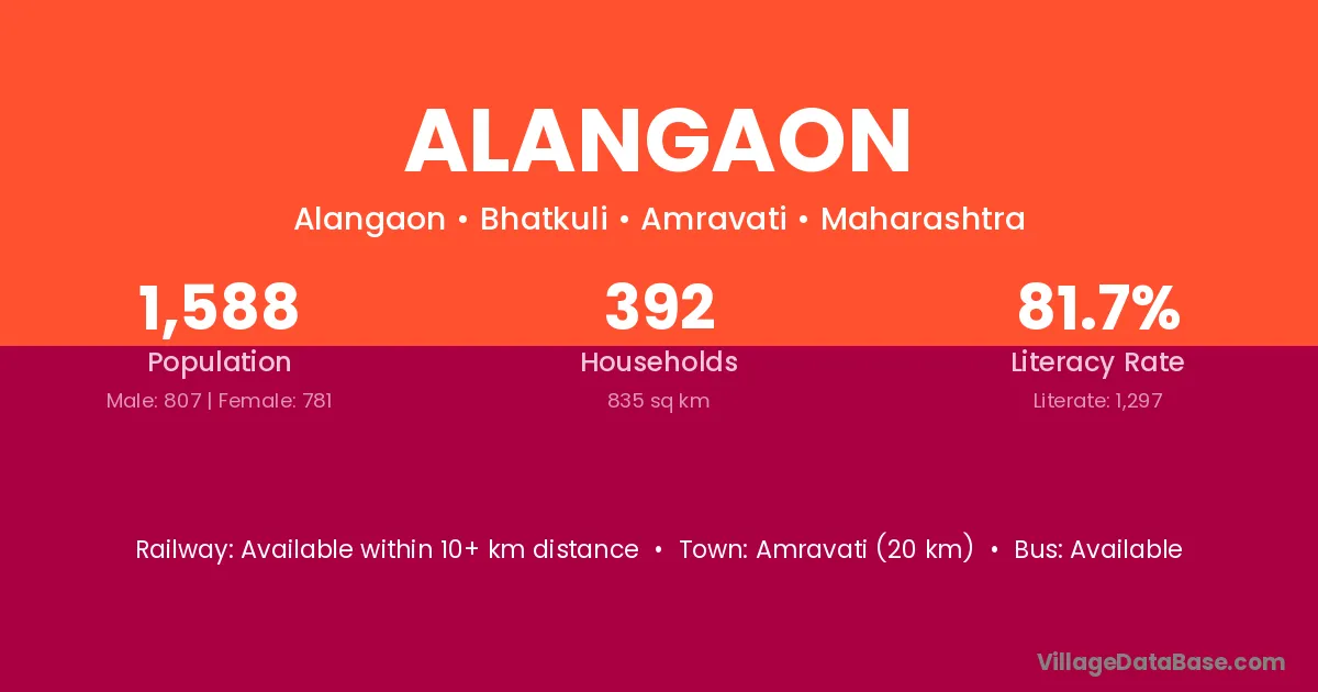 Alangaon village has a total population of 1,588 people, of which 807 are males and 781 are females.