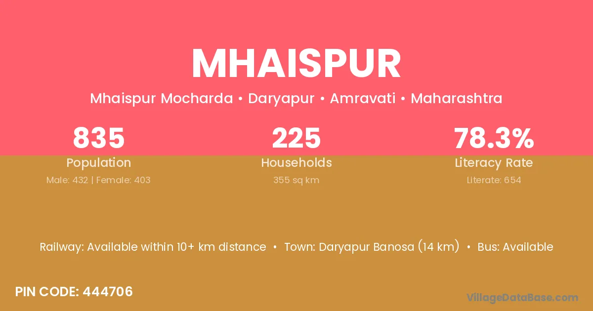 Amravati (32 km) is the nearest town to Mhaispur village for major economic activities and is located approximately 32 km away.