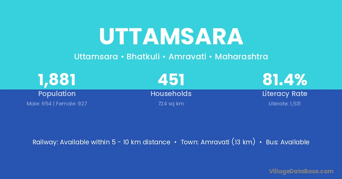 Amravati (13 km) is the nearest town to Uttamsara village for major economic activities and is located approximately 13 km away.