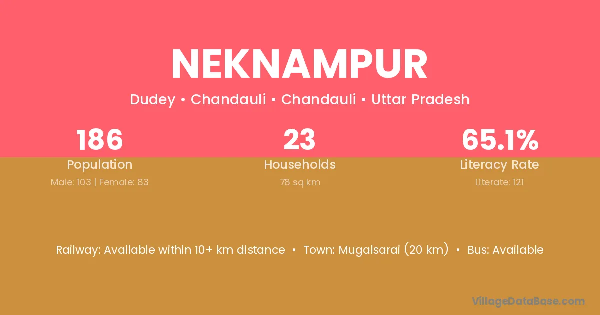 Neknampur village has a total population of 185 people, of which 89 are males and 96 are females.