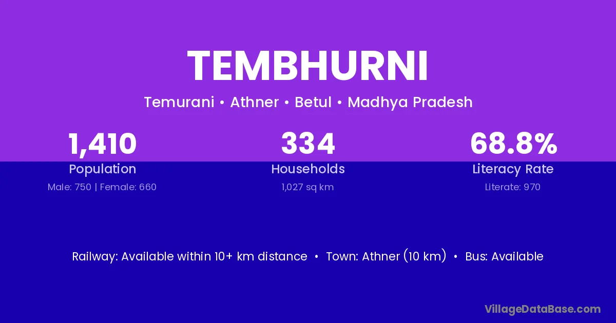Chandur (5 km) is the nearest town to Tembhurni village for major economic activities and is located approximately 5 km away.