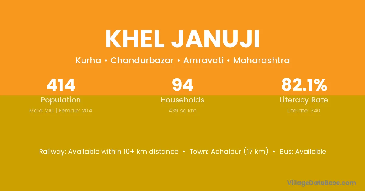 Achalpur (17 km) is the nearest town to Khel Januji village for major economic activities and is located approximately 17 km away.