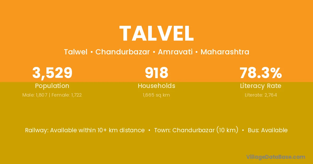Chandurbazar (10 km) is the nearest town to Talvel village for major economic activities and is located approximately 10 km away.