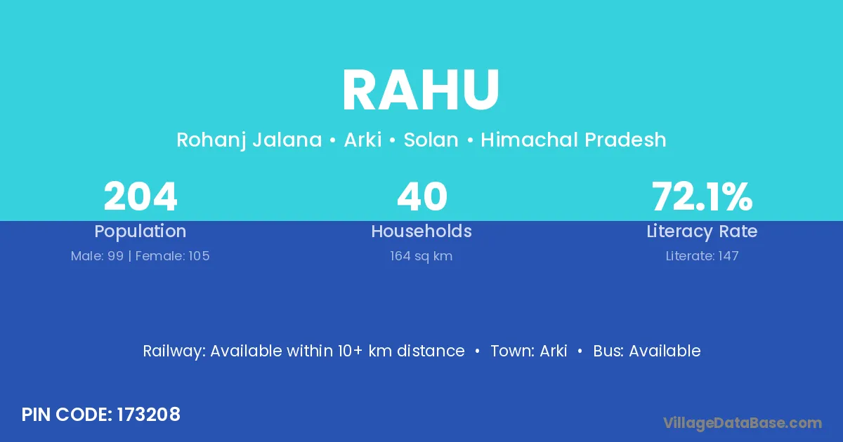 Bhaisdahi (50 km) is the nearest town to Rahu village for major economic activities and is located approximately 50 km away.