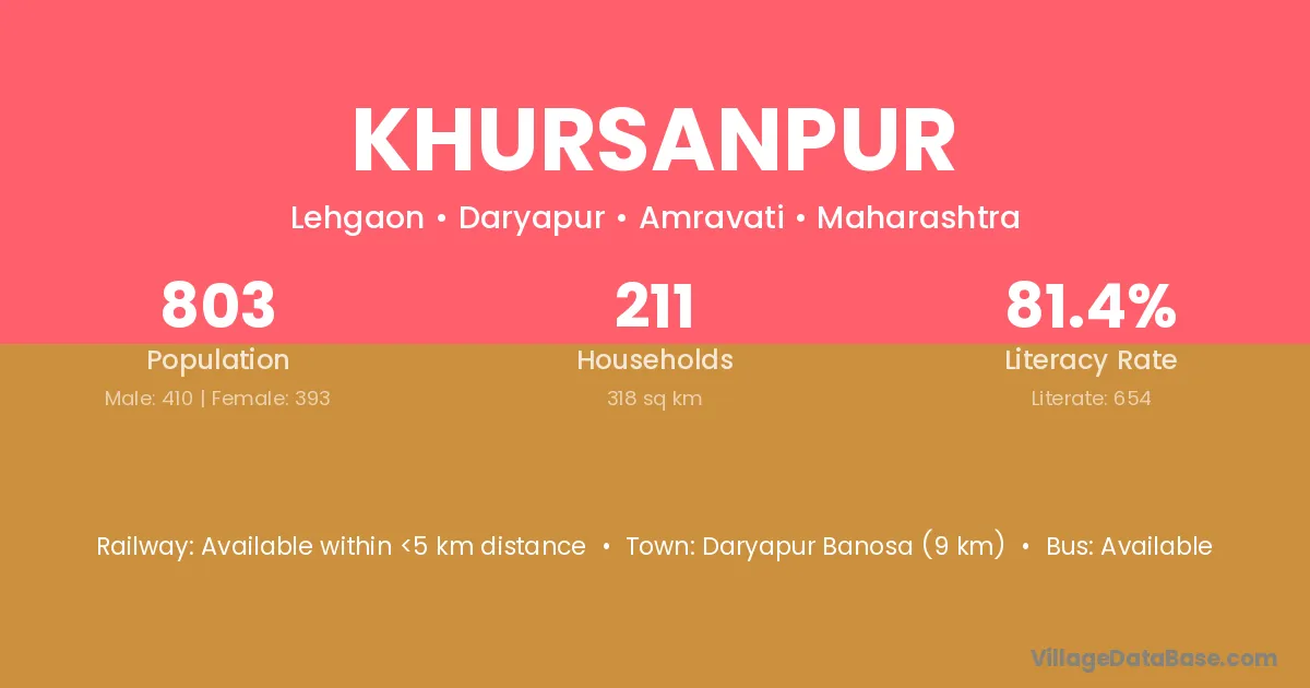 Daryapur Banosa (9 km) is the nearest town to Khursanpur village for major economic activities and is located approximately 9 km away.
