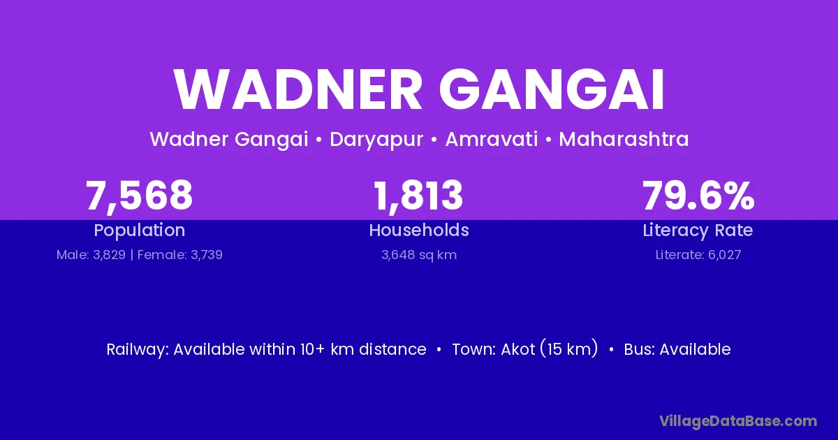 Akot (15 km) is the nearest town to Wadner Gangai village for major economic activities and is located approximately 15 km away.