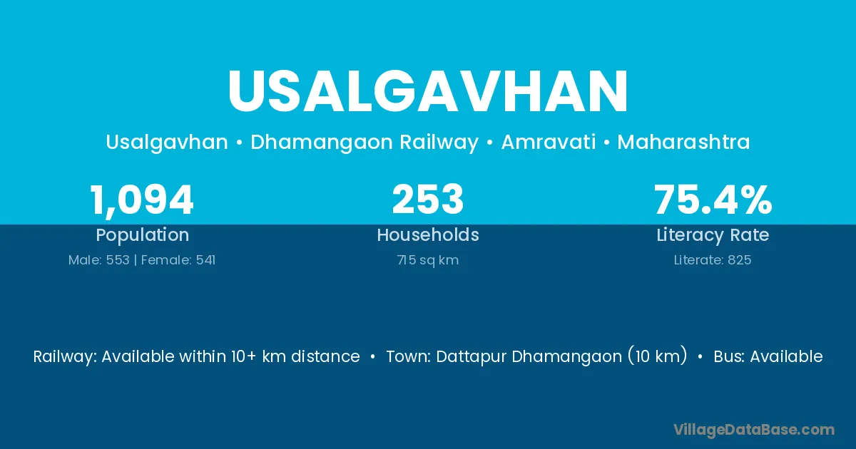 Usalgavhan village has a total population of 1,094 people, of which 553 are males and 541 are females.