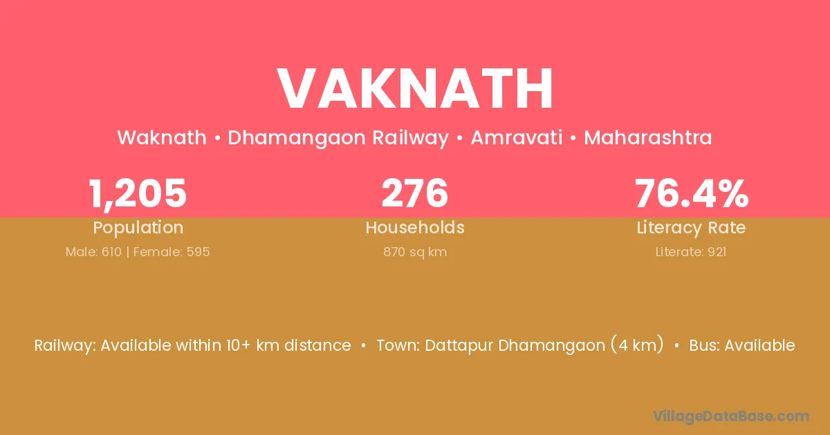 Dattapur Dhamangaon (4 km) is the nearest town to Vaknath village for major economic activities and is located approximately 4 km away.