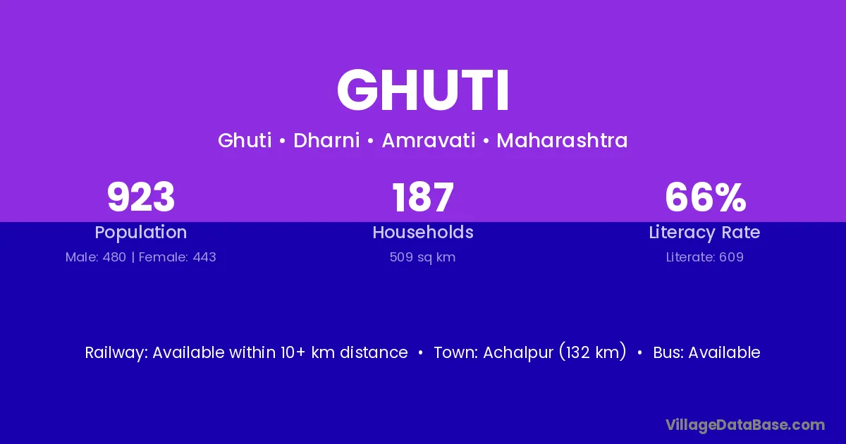 Achalpur (132 km) is the nearest town to Ghuti village for major economic activities and is located approximately 132 km away.