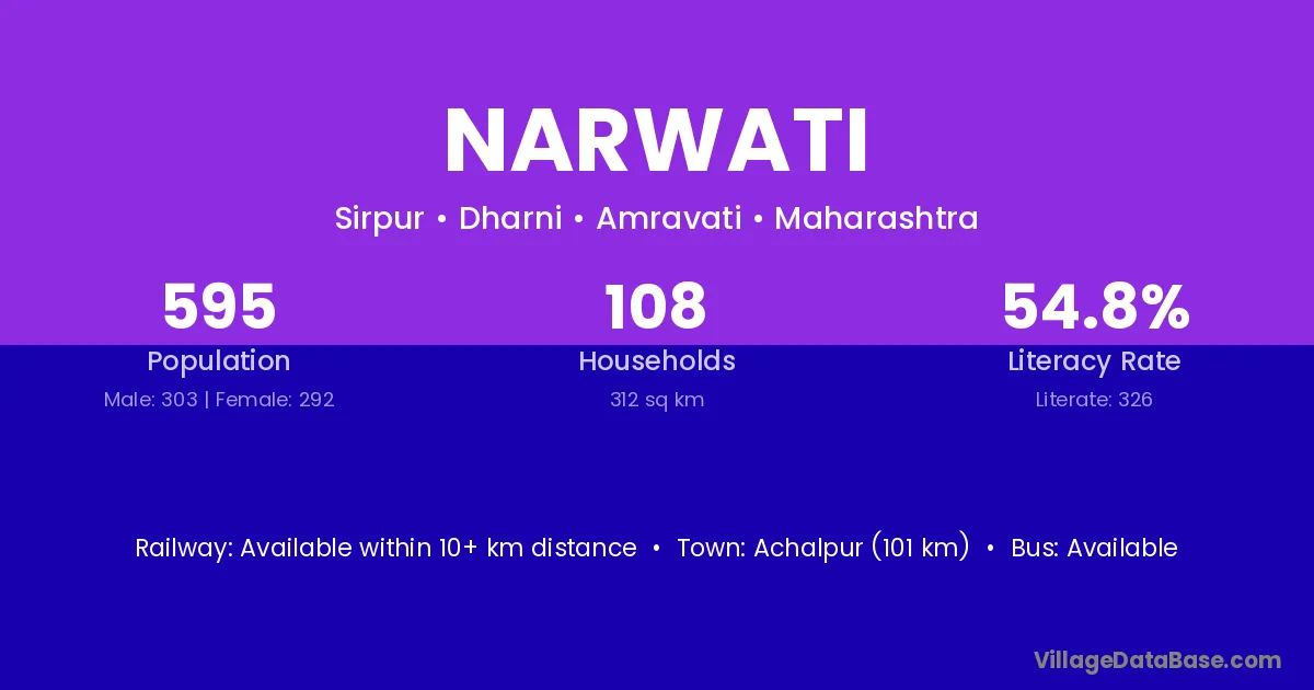 Achalpur (101 km) is the nearest town to Narwati village for major economic activities and is located approximately 101 km away.