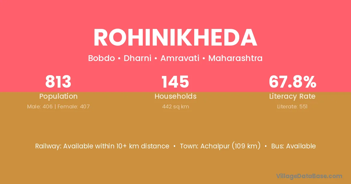 Rohinikheda village has a total population of 813 people, of which 406 are males and 407 are females.