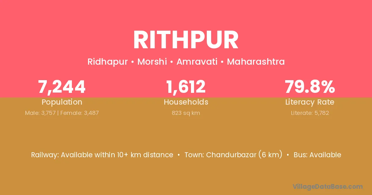Chandurbazar (6 km) is the nearest town to Rithpur village for major economic activities and is located approximately 6 km away.