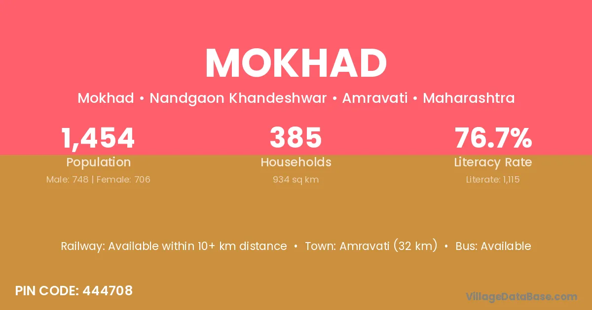 Amravati (32 km) is the nearest town to Mokhad village for major economic activities and is located approximately 32 km away.