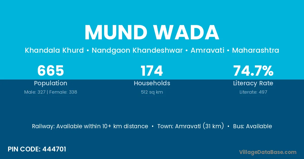 Amravati (31 km) is the nearest town to Mund Wada village for major economic activities and is located approximately 31 km away.