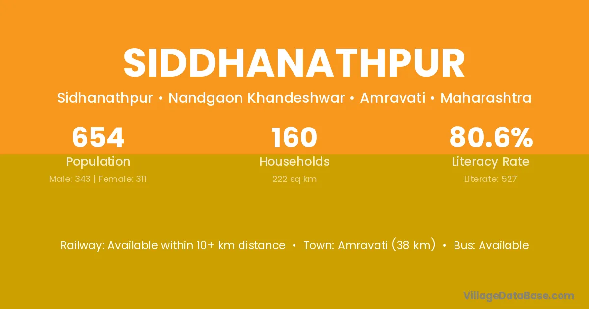 Amravati (38 km) is the nearest town to Siddhanathpur village for major economic activities and is located approximately 38 km away.
