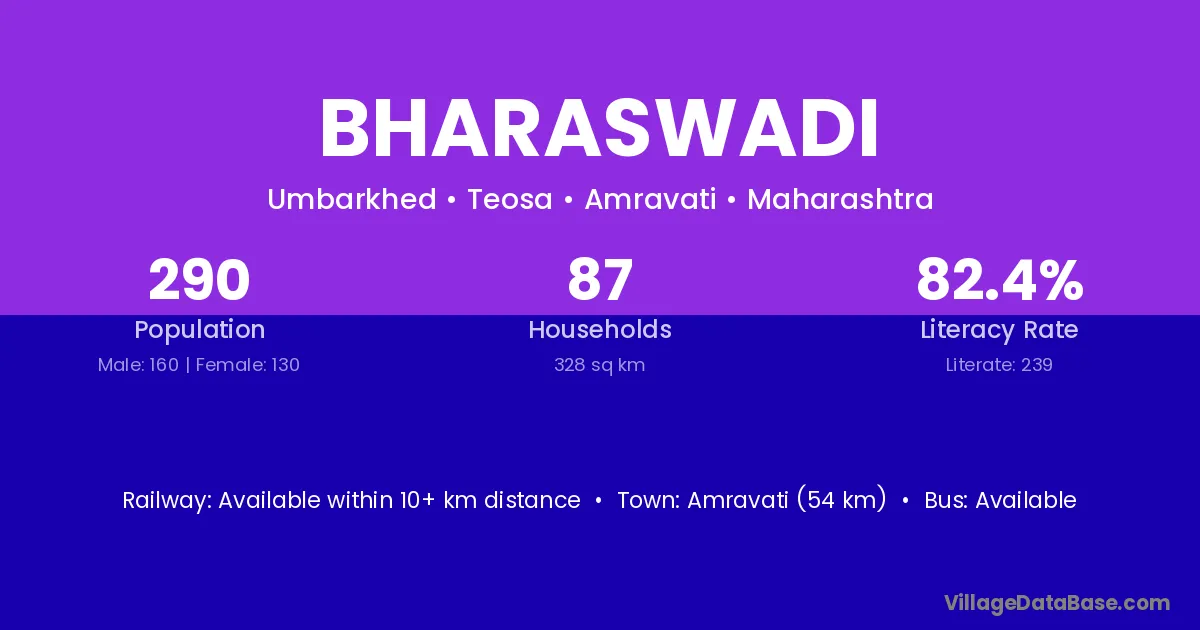 Amravati (54 km) is the nearest town to Bharaswadi village for major economic activities and is located approximately 54 km away.