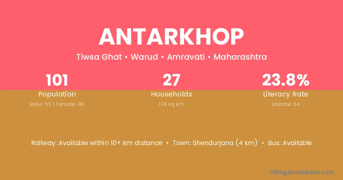 Shendurjana (4 km) is the nearest town to Antarkhop village for major economic activities and is located approximately 4 km away.