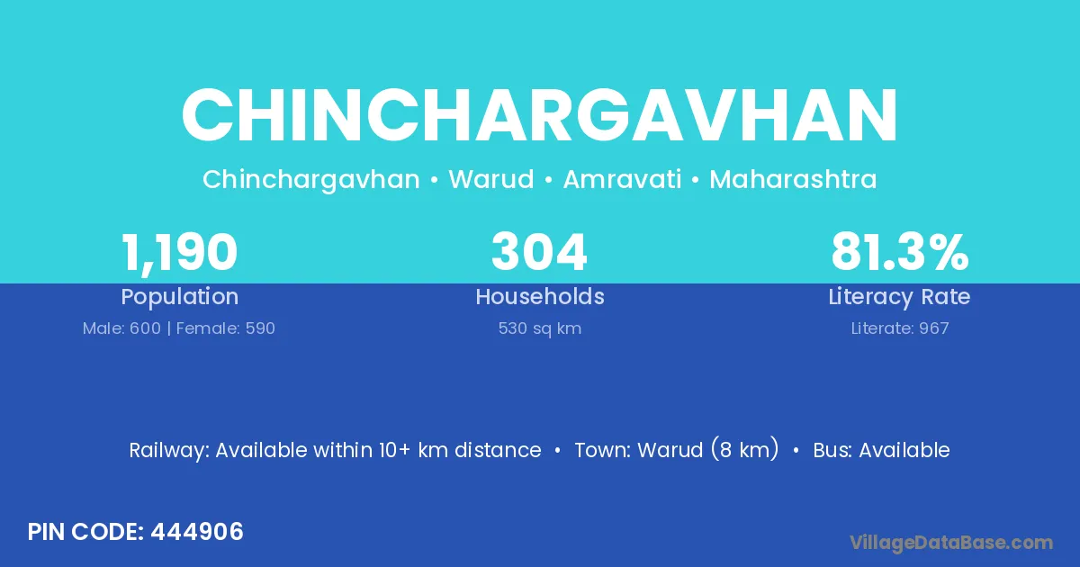 Warud (8 km) is the nearest town to Chinchargavhan village for major economic activities and is located approximately 8 km away.