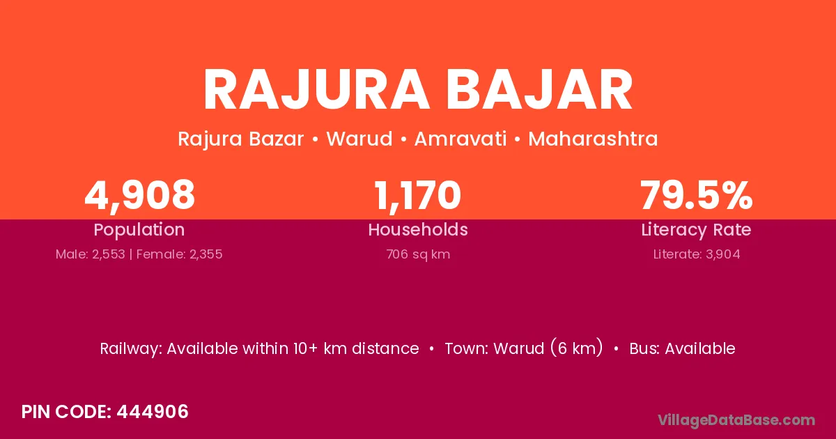 Warud (6 km) is the nearest town to Rajura Bajar village for major economic activities and is located approximately 6 km away.