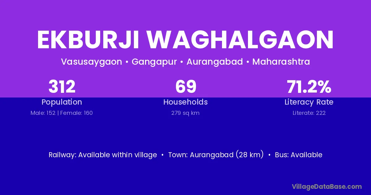 Ekburji Waghalgaon village has a total population of 312 people, of which 152 are males and 160 are females.