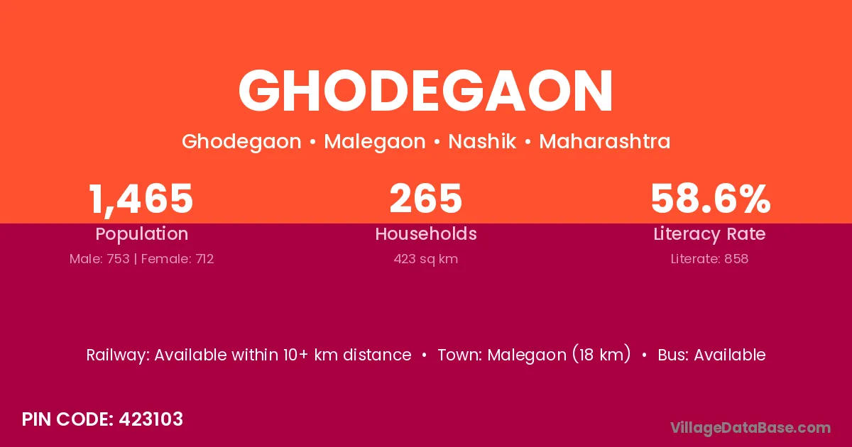 Gangapur (15 km) is the nearest town to Ghodegaon village for major economic activities and is located approximately 15 km away.