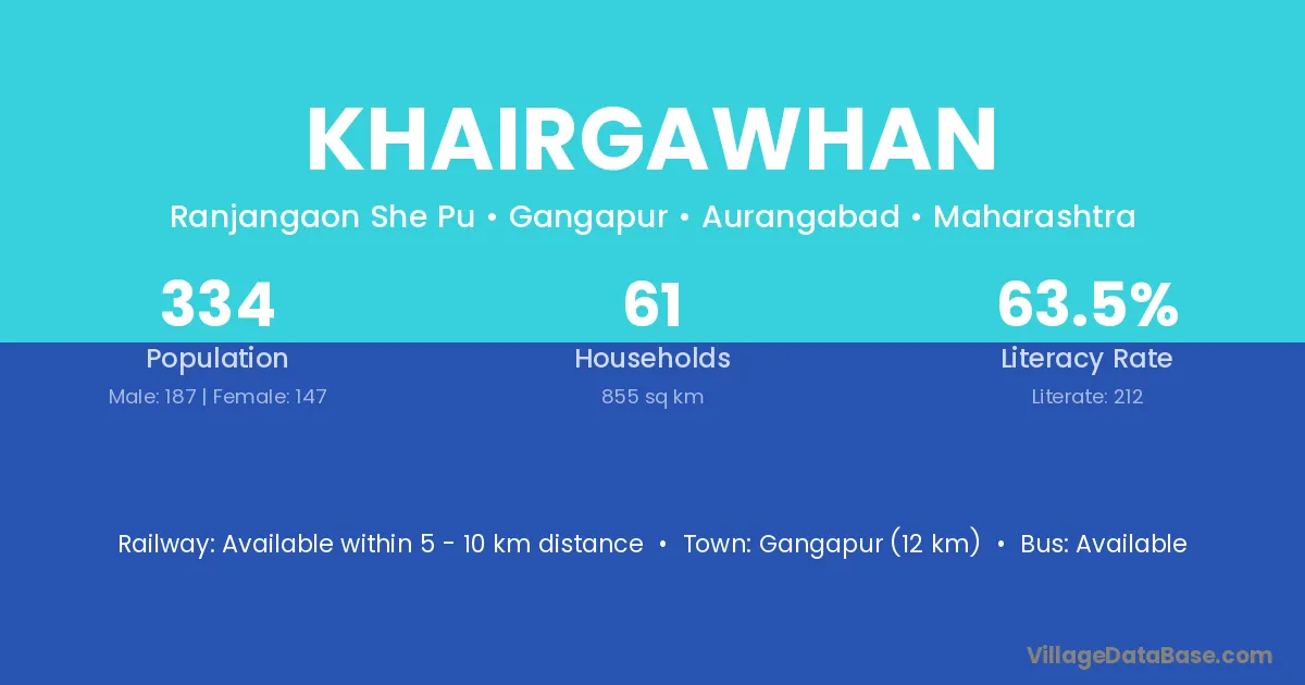 Gangapur (12 km) is the nearest town to Khairgawhan village for major economic activities and is located approximately 12 km away.