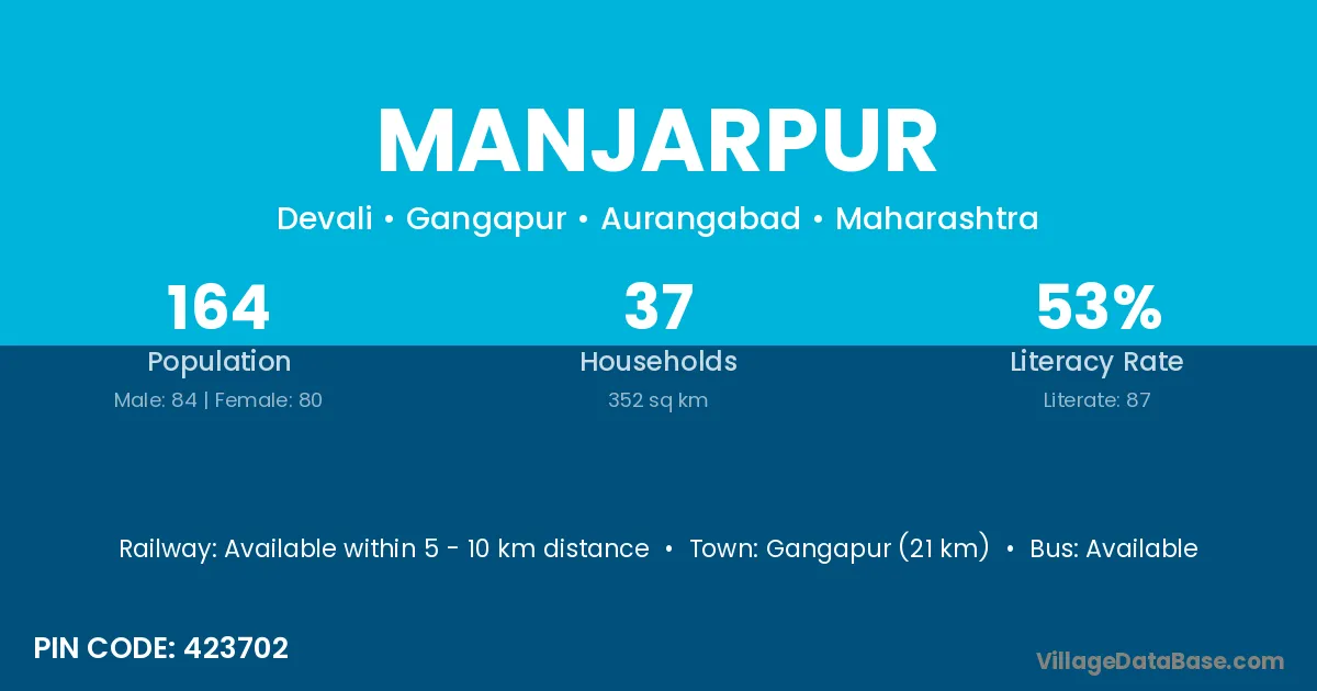 Gangapur (21 km) is the nearest town to Manjarpur village for major economic activities and is located approximately 21 km away.