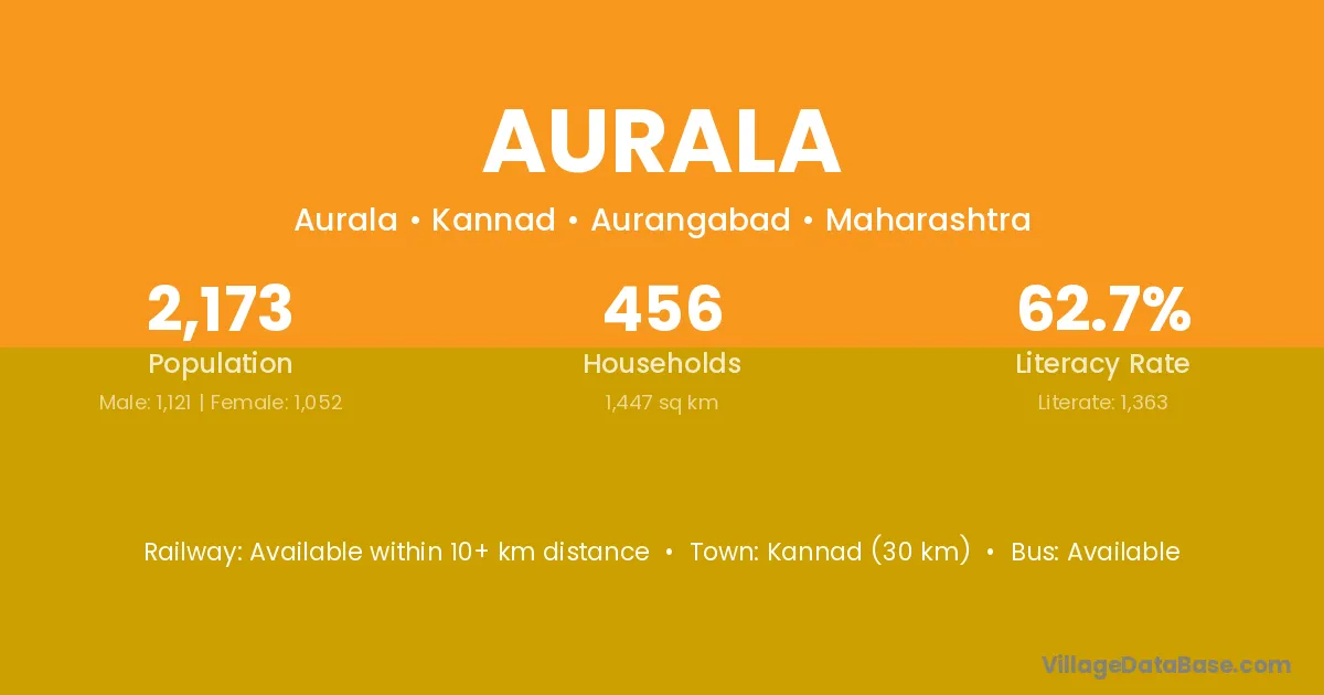 Aurala village has a total population of 2,173 people, of which 1,121 are males and 1,052 are females.