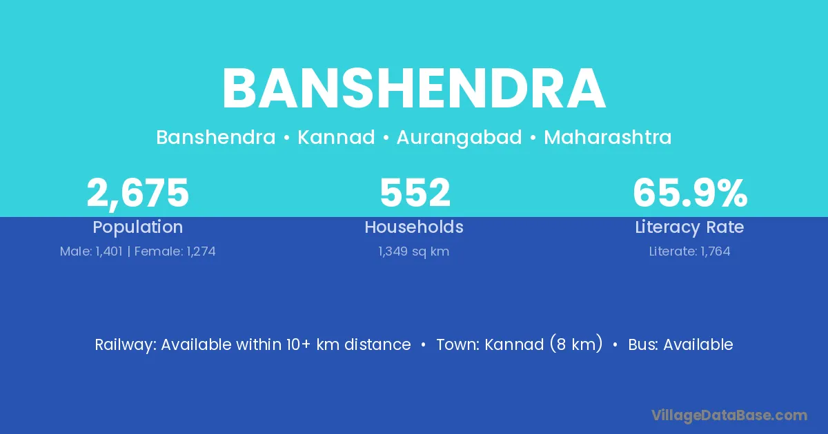 Kannad (8 km) is the nearest town to Banshendra village for major economic activities and is located approximately 8 km away.