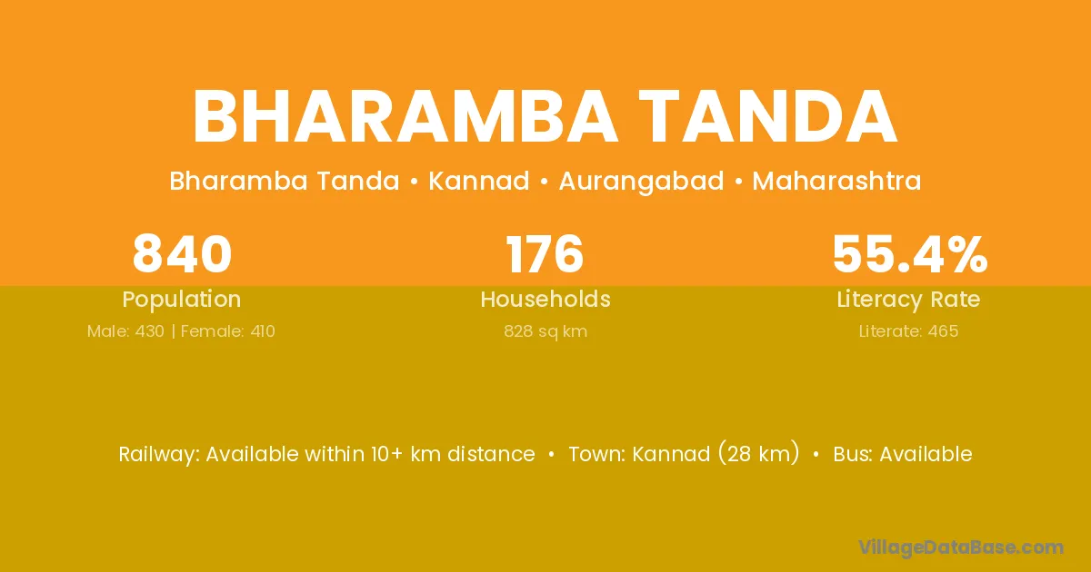 Kannad (28 km) is the nearest town to Bharamba Tanda village for major economic activities and is located approximately 28 km away.