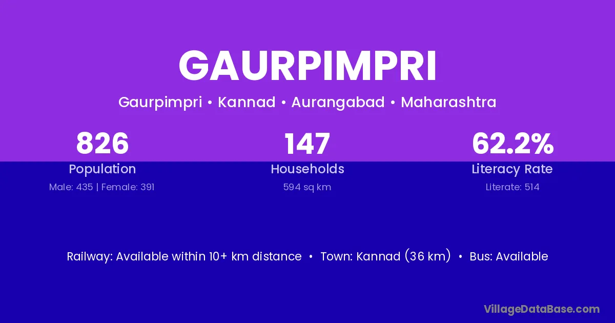 Kannad (36 km) is the nearest town to Gaurpimpri village for major economic activities and is located approximately 36 km away.