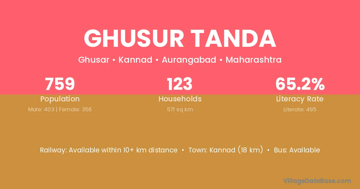 Kannad (18 km) is the nearest town to Ghusur Tanda village for major economic activities and is located approximately 18 km away.