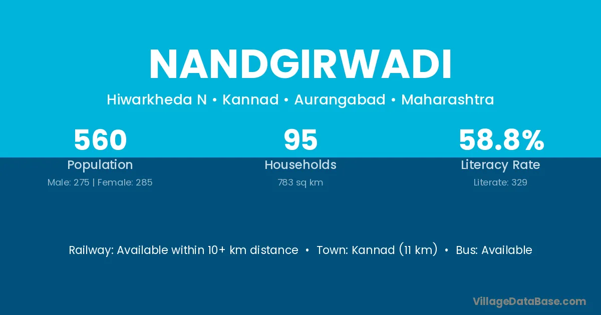 Kannad (11 km) is the nearest town to Nandgirwadi village for major economic activities and is located approximately 11 km away.