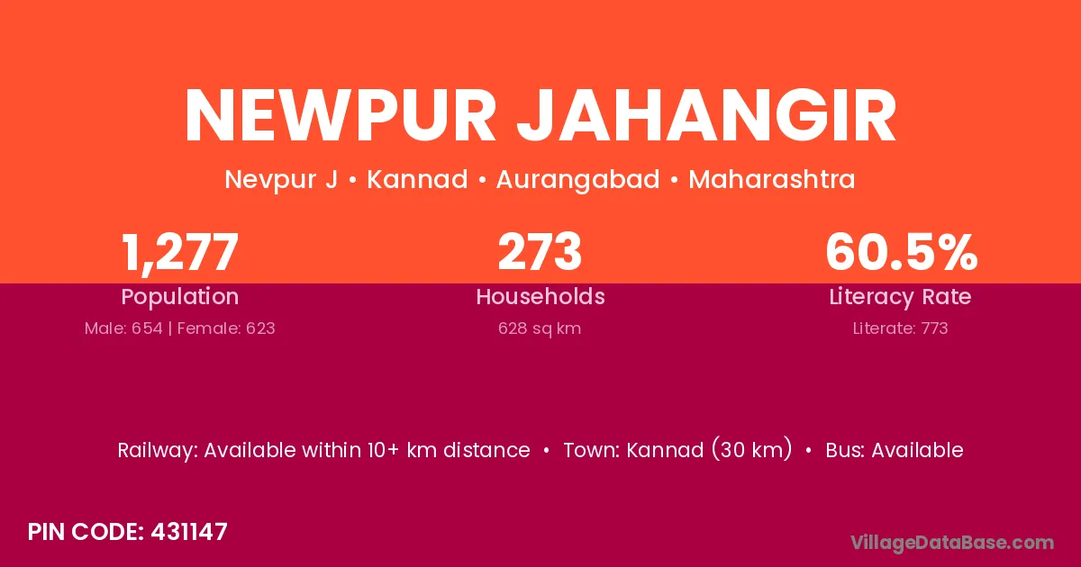 Kannad (30 km) is the nearest town to Newpur Jahangir village for major economic activities and is located approximately 30 km away.