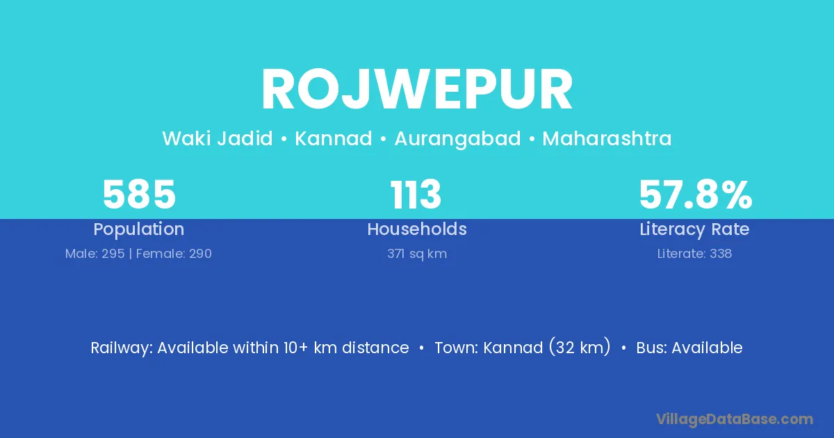 Kannad (32 km) is the nearest town to Rojwepur village for major economic activities and is located approximately 32 km away.