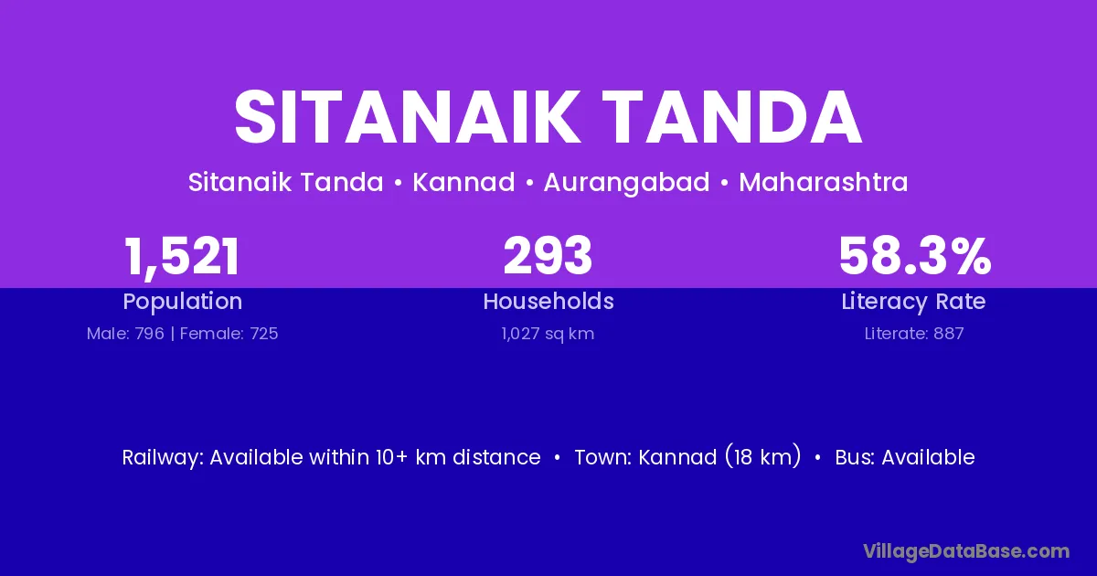 Kannad (18 km) is the nearest town to Sitanaik Tanda village for major economic activities and is located approximately 18 km away.