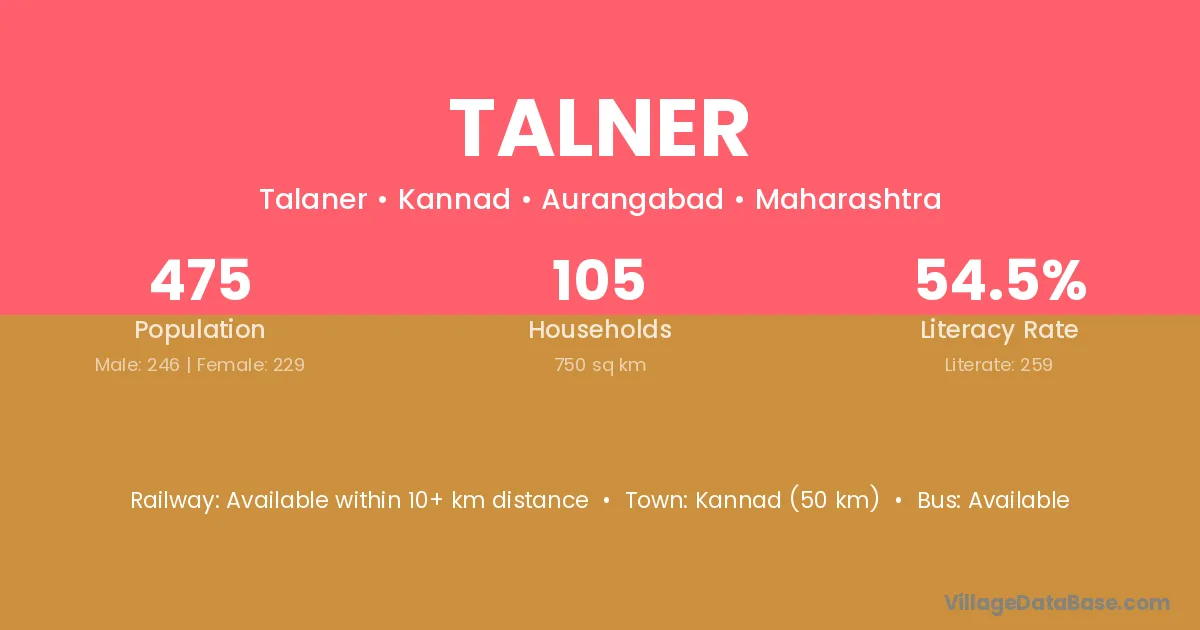 Talner village has a total population of 475 people, of which 246 are males and 229 are females.