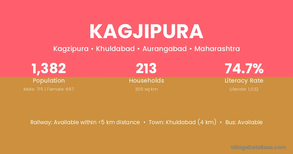 Khuldabad (4 km) is the nearest town to Kagjipura village for major economic activities and is located approximately 4 km away.
