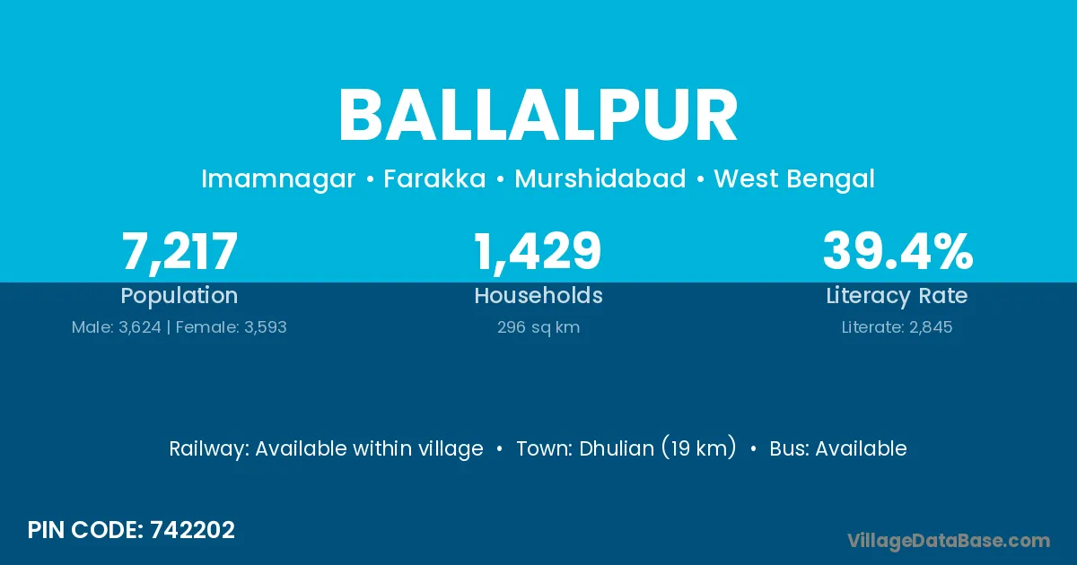 The literacy rate of Ballalpur village is 65.35%. Male literacy stands at 73.54% and female literacy at 56.02%.