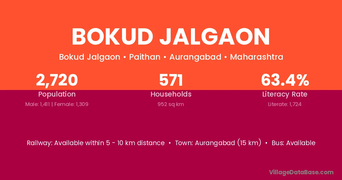 Aurangabad (15 km) is the nearest town to Bokud Jalgaon village for major economic activities and is located approximately 15 km away.