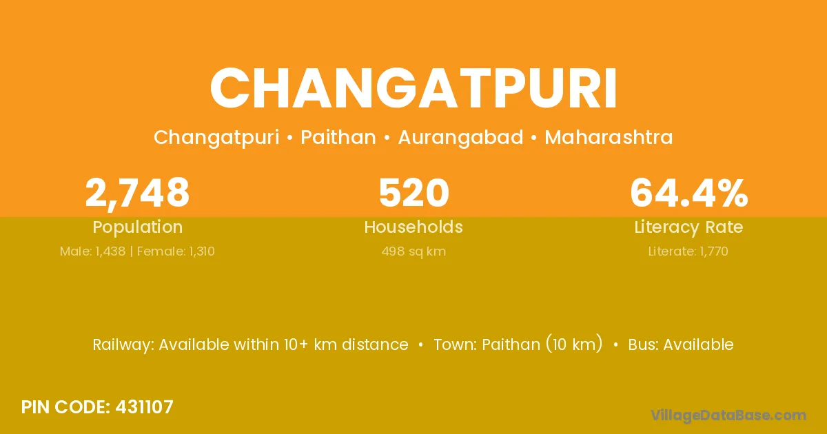 Paithan (10 km) is the nearest town to Changatpuri village for major economic activities and is located approximately 10 km away.