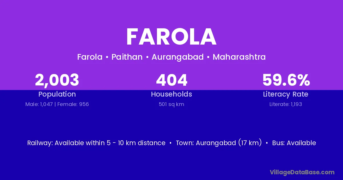 Aurangabad (17 km) is the nearest town to Farola village for major economic activities and is located approximately 17 km away.