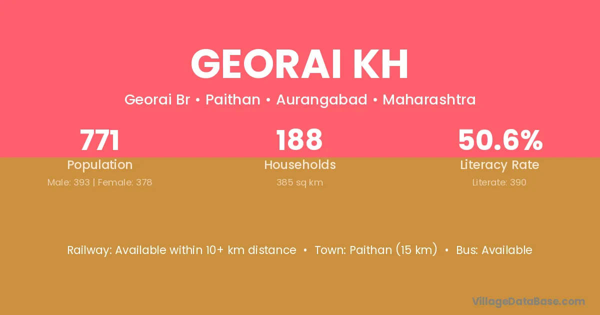 Georai Kh village has a total population of 771 people, of which 393 are males and 378 are females.